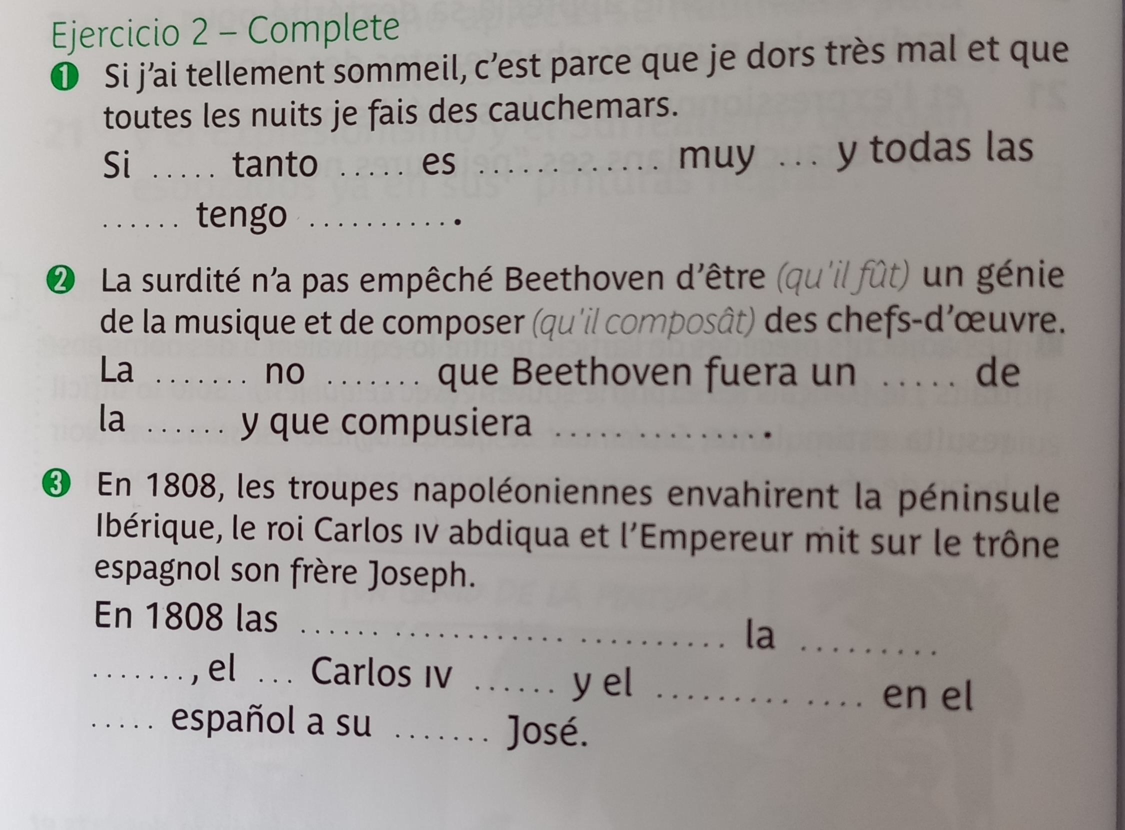 - le verbe dar, irrégulier; au présent (yo doy)