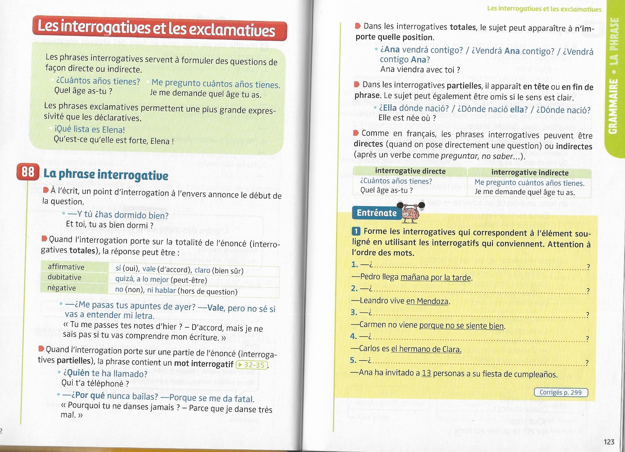 👉 Réécris les phrases suivantes en utilisant une forme exclamative espagnole
