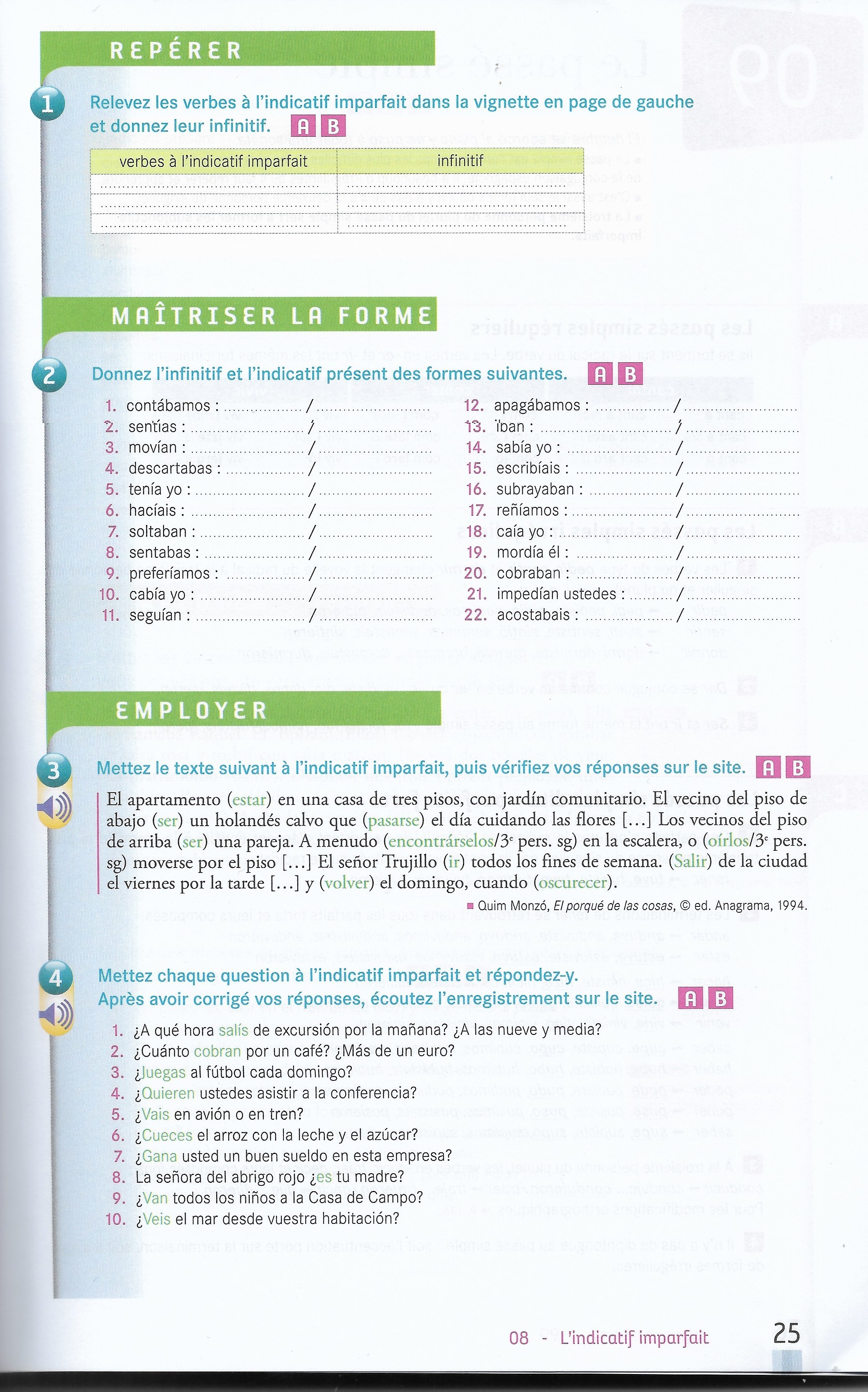 Leçon 8 : l'imparfait de l'indicatif